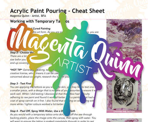 This Digital Download is a step by step cheat sheet for the extreme Acrylic Paint Pouring method of embellishing with Temporary Tattoos.