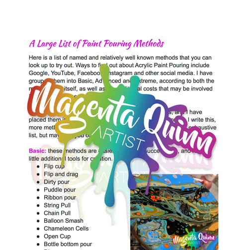 Digital Download - A Large List of Acrylic Paint Pouring Methods (Free)