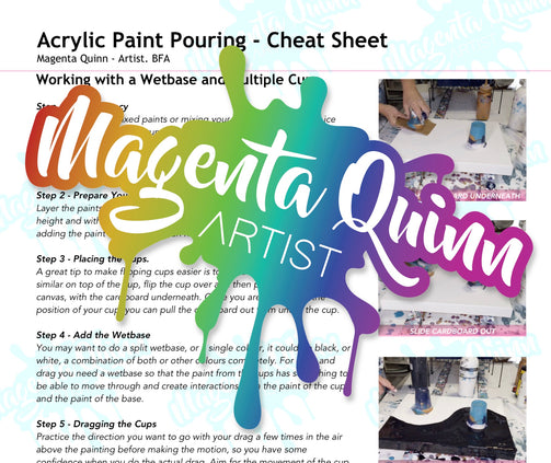 This Digital Download is a step by step cheat sheet for the advanced Acrylic Paint Pouring method of working on a Wetbase with Multiple Cups.