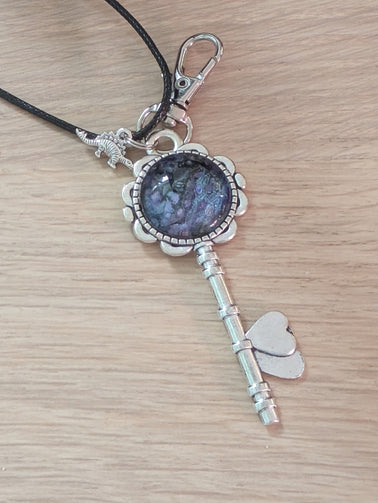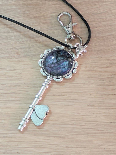 Keyring with charm, can also be used as a necklace. Necklace cord included.