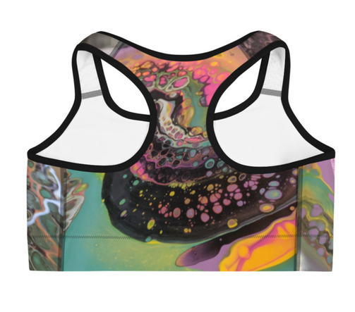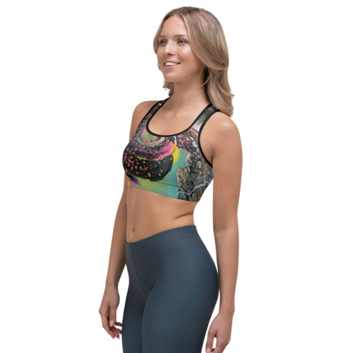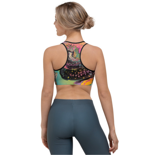 This gorgeous sports bra is made from moisture-wicking material that stays dry during low and medium intensity workouts. The bra has support material in the shoulder straps, double layer front, and a wide elastic band to ensure constant support.